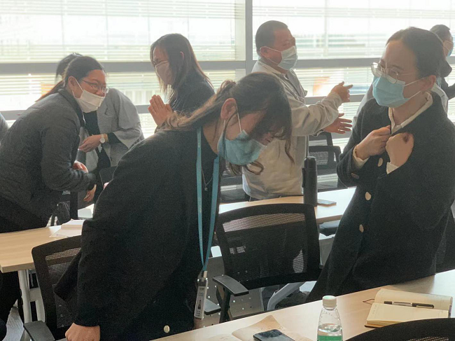 本次課程分為禮儀與情商、職場(chǎng)印象管理和有效溝通技巧三部分。王彥群老師先用生動(dòng)幽默的語(yǔ)言講授了禮儀與情商的深層蘊(yùn)意,禮儀的根本是尊重-尊重他人、尊重自己、尊重所有人,在與人交往中要有主動(dòng)意識(shí),懂得換位思考。之后王彥群老師用現(xiàn)場(chǎng)教學(xué)的方式,向?qū)W員們傳授商務(wù)著裝技巧及職場(chǎng)舉止注意要點(diǎn),以提升職場(chǎng)印象。在最后的溝通技巧環(huán)節(jié)中,王彥群老師通過(guò)小組展示練習(xí)和互動(dòng)游戲,讓學(xué)員體會(huì)“問(wèn)答贊”、“說(shuō)聽答”的重要性,從而掌握有效溝通的技巧。在3個(gè)小時(shí)的培訓(xùn)過(guò)程,現(xiàn)場(chǎng)氣氛活躍熱烈,參訓(xùn)學(xué)員在高漲的學(xué)習(xí)氛圍中掌握了許多實(shí)用性技巧的禮儀知識(shí),效果顯著,獲得了參訓(xùn)學(xué)員的一致好評(píng)。