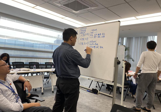 培訓采取分組討論形式,分成四組對相關案例進行全面復盤,并按照內部環(huán)境、風險評估(辨識、分析)、控制活動、信息與溝通、內部監(jiān)督等五個方面,對案例中反映出的該公司在戰(zhàn)略、業(yè)務、資源、法務等管理中存在的重大風險、失效環(huán)節(jié)進行全面的辨識和分析,有針對性地提出控制措施和解決方案。研討過程中,各小組推選了小組長,全體成員發(fā)揮各自專業(yè)優(yōu)勢,開展頭腦風暴,集思廣益,形成各小組的分析結論,并逐一對分析成果進行了講解和展示。活動現場氣氛熱烈,討論充分,各小組站在內部控制獨特視角,指出了很多隱藏在公司管理中的“漏洞”“死角”,特別針對制約制衡機制、分權管理、監(jiān)督審核的重要意義和完善方案提出了獨到的見解。在最后的自評打分環(huán)節(jié),各小組還特別針對小組成員的參與程度、分工協作、溝通交流等情況進行了自評,為下一步加強跨部門、跨單位的良好溝通、互動開了一個好頭。