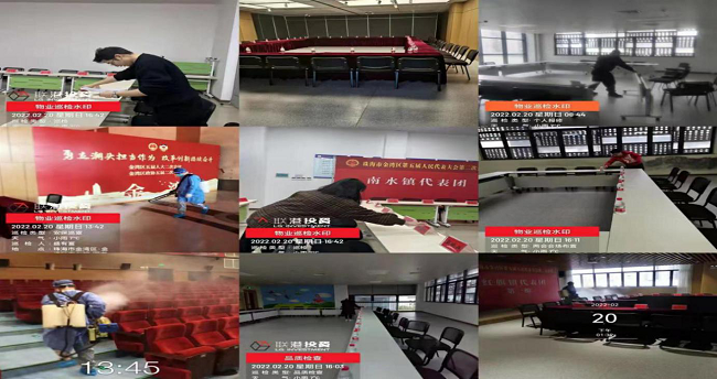 五是保潔工作到位。針對會議前期下雨的天氣狀況,在會場門口鋪設(shè)防滑墊,保障會場干爽整潔;會前做好會場全面清潔工作,重點保潔區(qū)域安排固定及機動保潔人員;會中巡查各重點區(qū)域(洗手間、電梯間、會場門口等)衛(wèi)生狀況,發(fā)現(xiàn)問題及時安排當班保潔處理;會后,迅速組織保潔人員打掃會場、清理垃圾、擺放桌椅,保持會場清潔整齊。