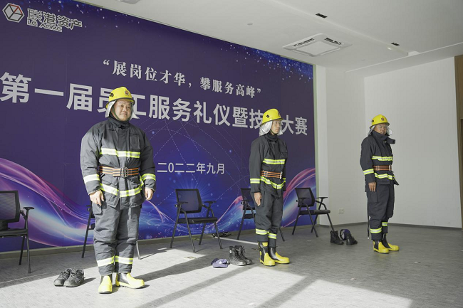 比賽現(xiàn)場(chǎng)消防服的快速穿戴展示服務(wù)安保人員的專業(yè)高效、快速響應(yīng)的應(yīng)變能力。平日里,他們24小時(shí)不間斷巡邏,守護(hù)業(yè)主安全,項(xiàng)目安全的背后離不開(kāi)他們?nèi)諒?fù)一日的用心耕耘。