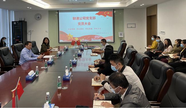 10月22日下午,聯(lián)港公司黨支部在5樓會(huì)議室召開黨員大會(huì),會(huì)議由支部副書記邱影主持,公司總經(jīng)理龍?chǎng)纬?..